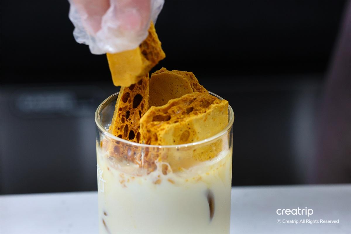 韓國糖餅Dalgona因為《魷魚遊戲》而喺全球爆紅,大家喺「AYA COFFEE」都可以試到啦!呢款飲品上面放滿脆口糖餅,大家可以分開食,或者同鮮奶溝勻~