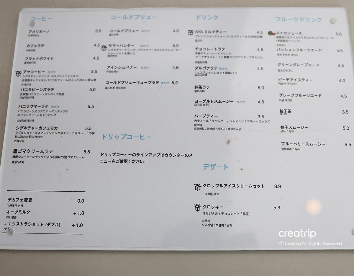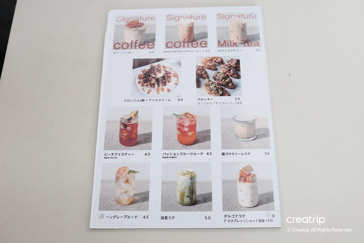 「AYA COFFEE」Menu相當之多樣化,就算唔飲咖啡都有好多選擇,而且仲有英文餐牌,唔識韓文都唔需要擔心!