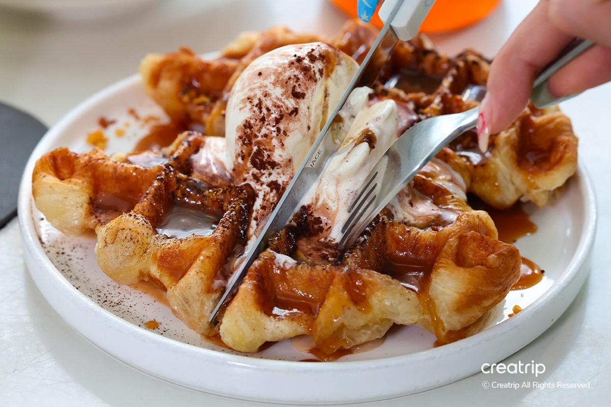 幾年前開始牛角包窩夫喺韓國好流行,幾乎每間Cafe都有賣。而「AYA COFFEE」嘅牛角包窩夫上面仲有Häagen-Dazs雪糕同焦糖醬,冰火交融勁正!
