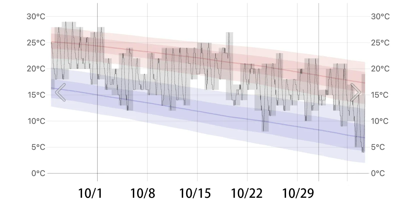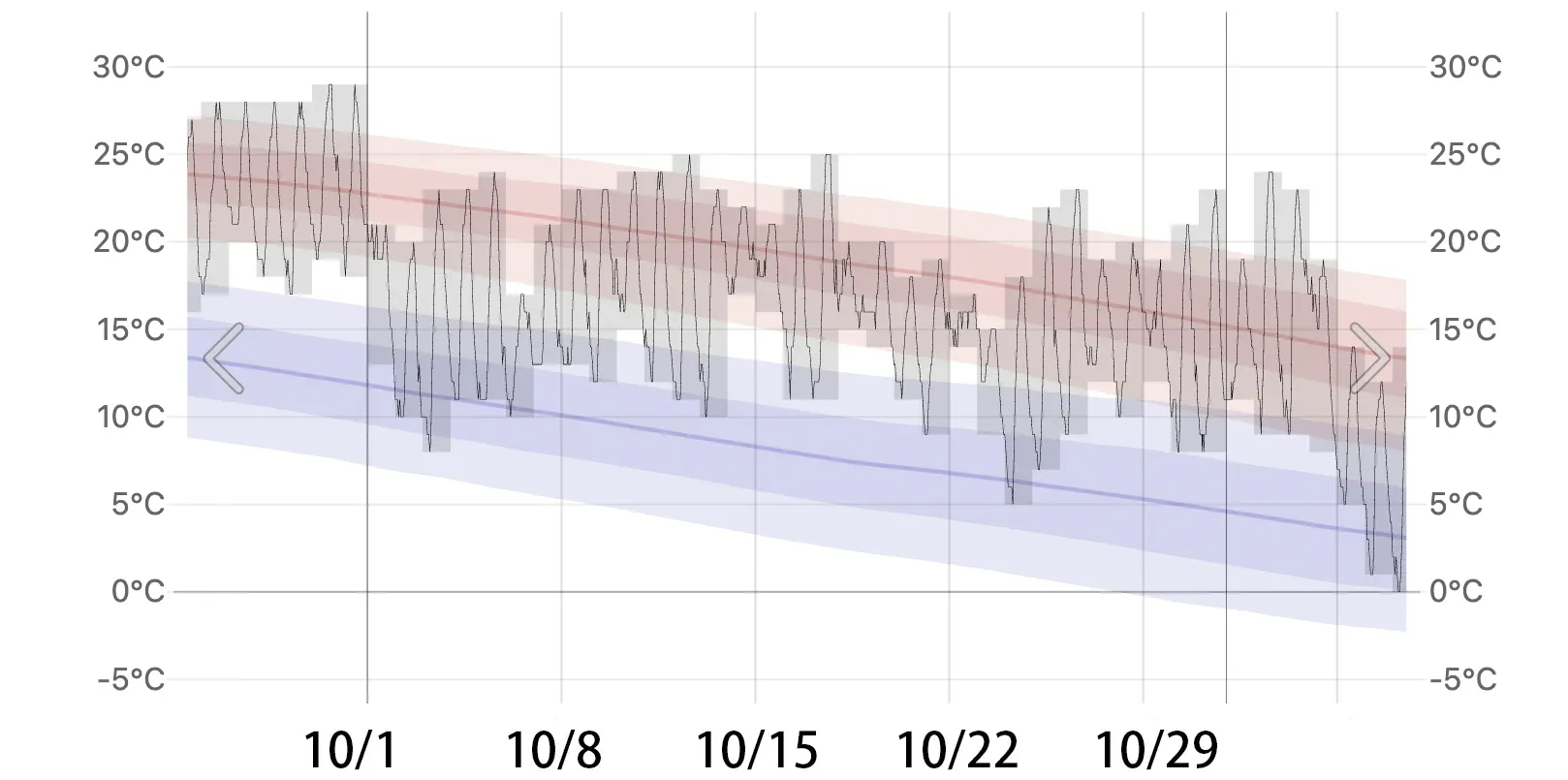 另外10月頭~中天氣都非常涼爽,不過去到10月尾最低溫度可能會跌到10度以下(特別係朝早嘅時候)!