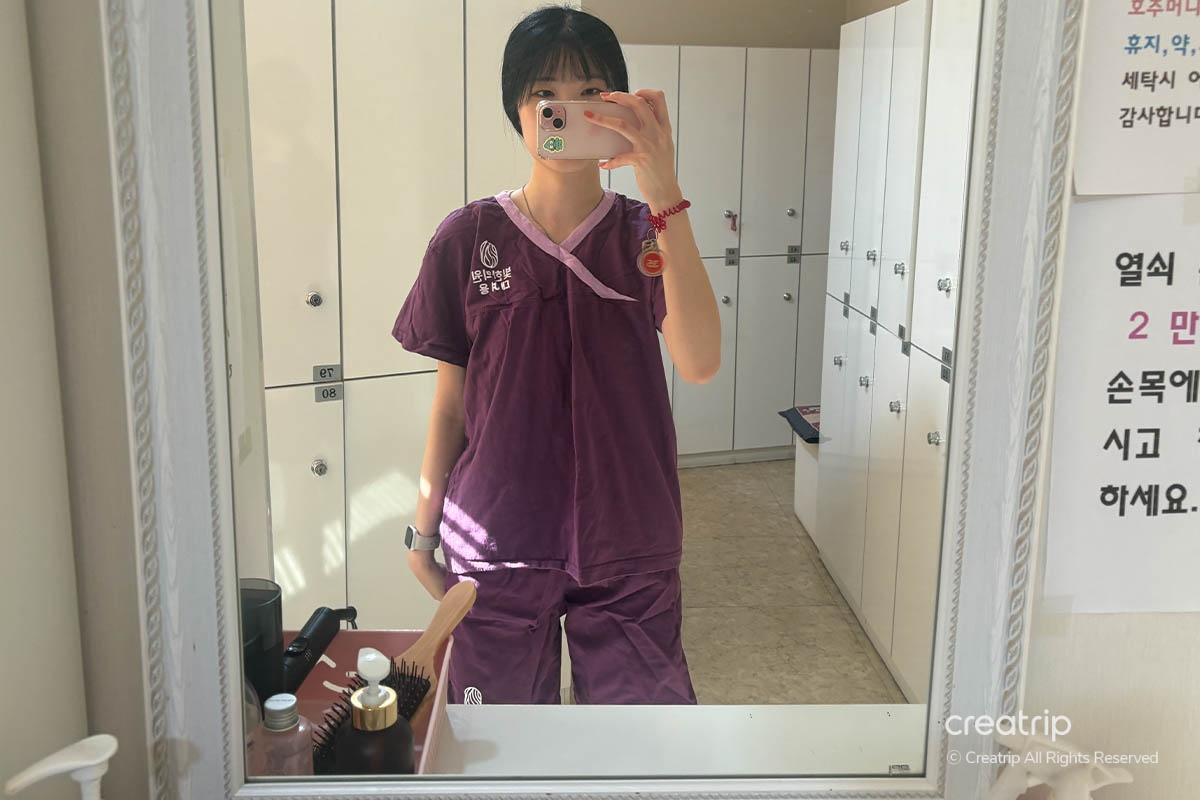 進女更衣室後,我會給你換上汗蒸服。