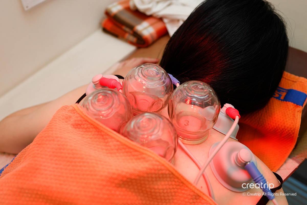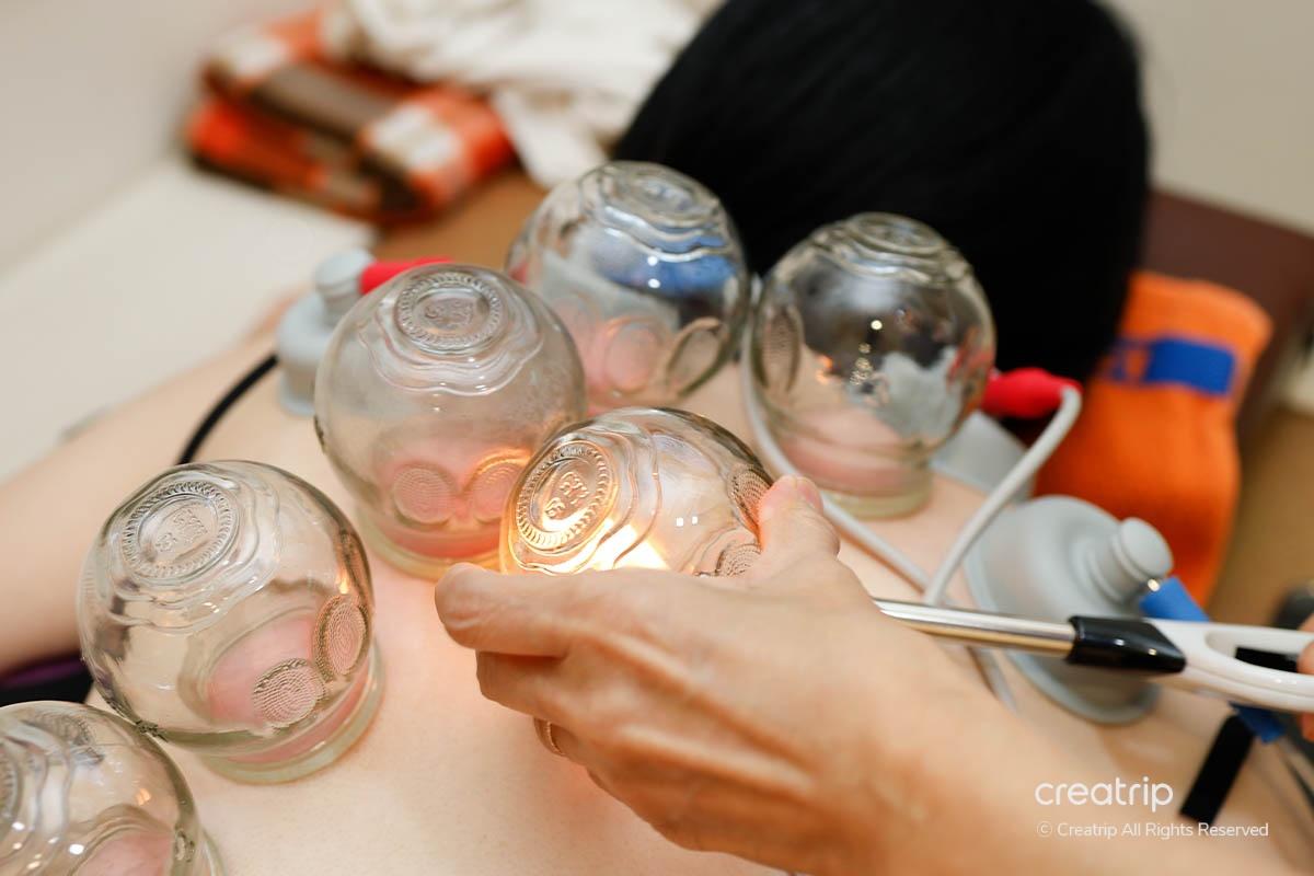 在進行鍼灸治療之前,先進行了拔罐過程。