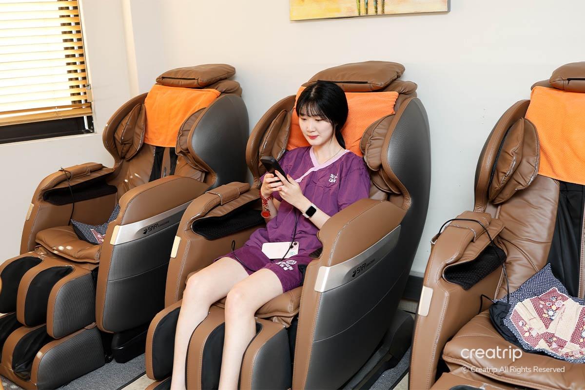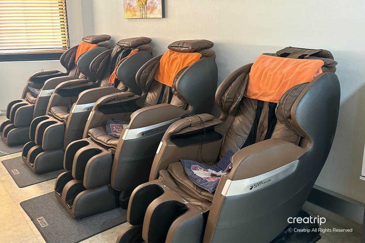在待機室等待順序的時候,可以在準備好的按摩椅上體驗按摩。