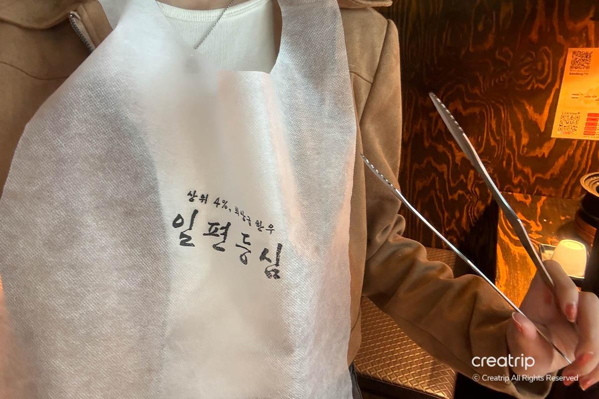 弘大「一片里脊」最正嘅係會用炭火燒,可以食到香濃肉味之餘仲有淡淡碳香!如果有需要嘅話大家可以攞埋圍裙用,咁就唔怕整污糟啦!