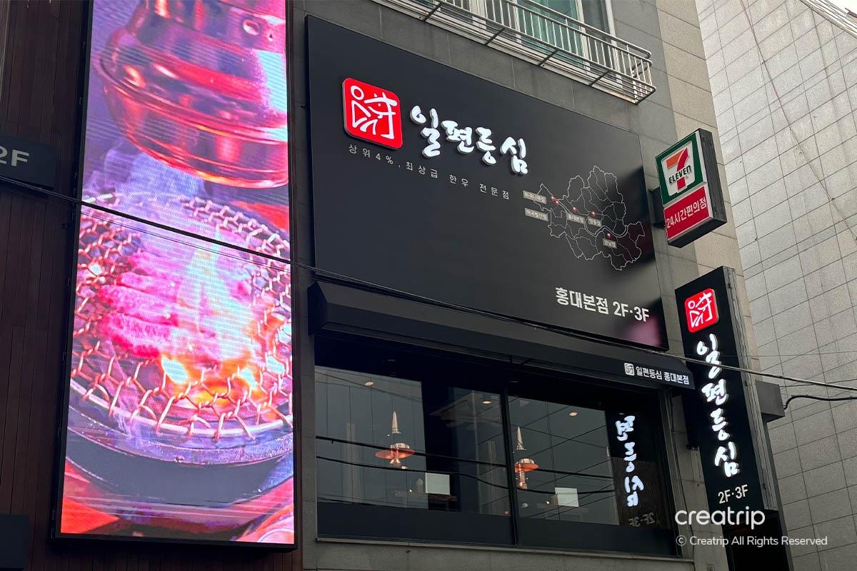 今日小編嚟到位於弘大嘅韓牛專門店「一片里脊」嘅總店,喺弘大入口站8號出口行1分鐘就到,好容易搵!本身就知道呢度好出名,一入門口仲見到超多韓國明星嘅簽名,令小編同朋友真係好期待啊!