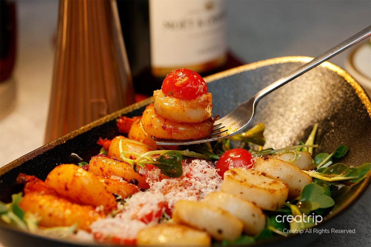 小編同朋友叫咗甜蝦Ceviche、羅勒冷意粉、香煎帶子&大蝦同咖喱香腸,大家記住要相機食先啦!