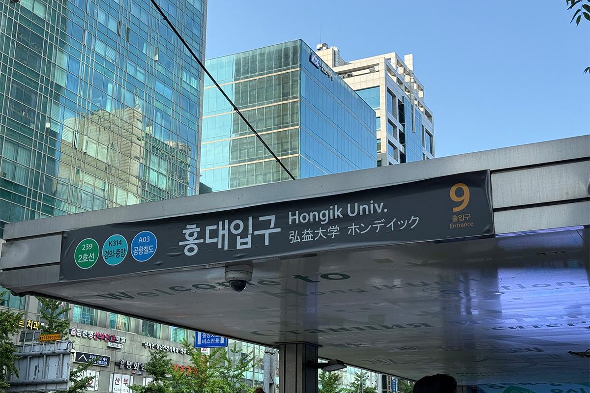 從弘大入口站9號出口出來。