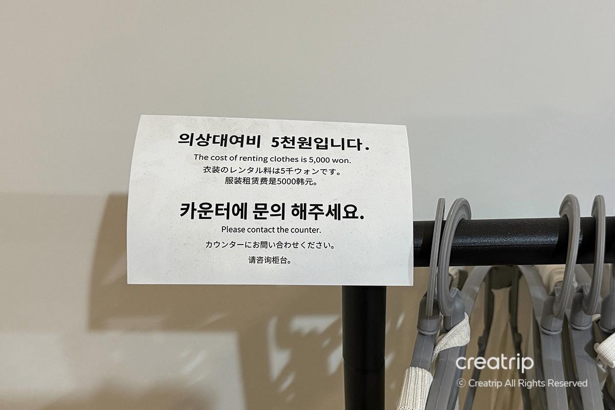 服裝租賃費爲5千韓元,必要時諮詢櫃檯即可輕鬆使用。