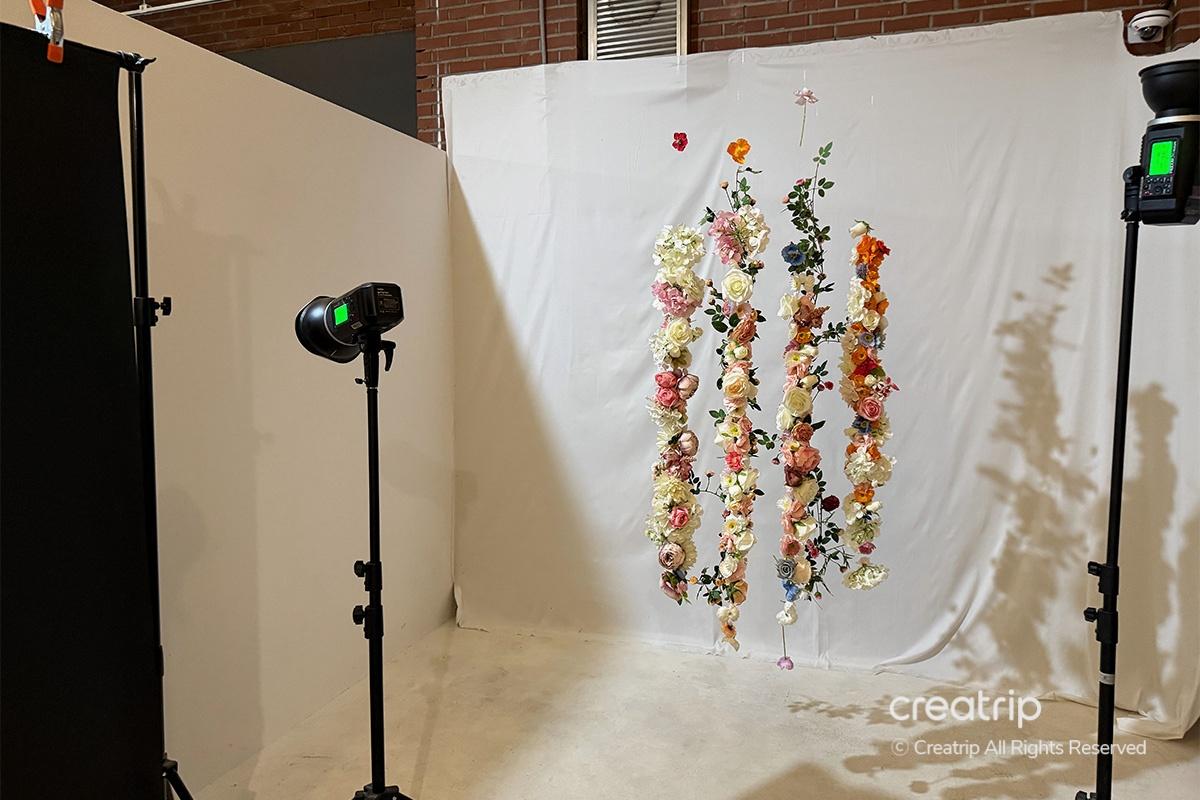攝影棚裏準備了多種顏色的背景紙,色調也可以調成亮色或暗色。
