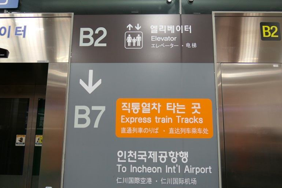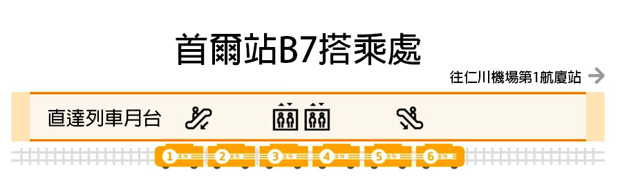 - 請喺首爾站、仁川機場T1、仁川機場T2跟住指示牌行