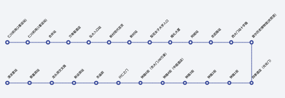 | 仁川T2 出發 | 仁川T1 | 金浦機場 | 尾站 | |