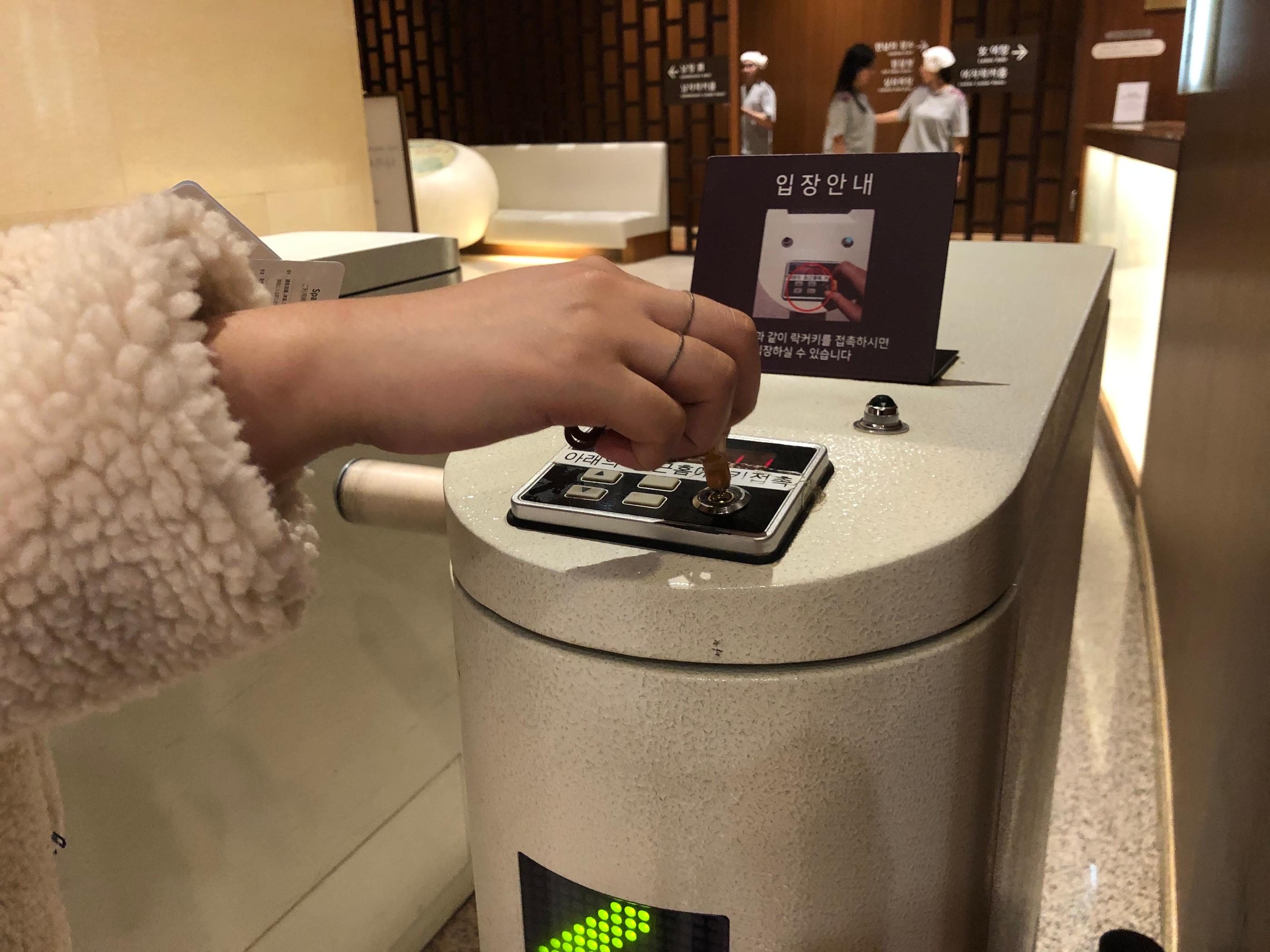 去counter出示入場券之後就會得到一個電子手環鎖匙,上面會有你嘅鞋櫃號碼,大家要除好鞋,放入對應號碼鞋櫃,鎖好櫃之後就可以去嘟鎖匙入場。