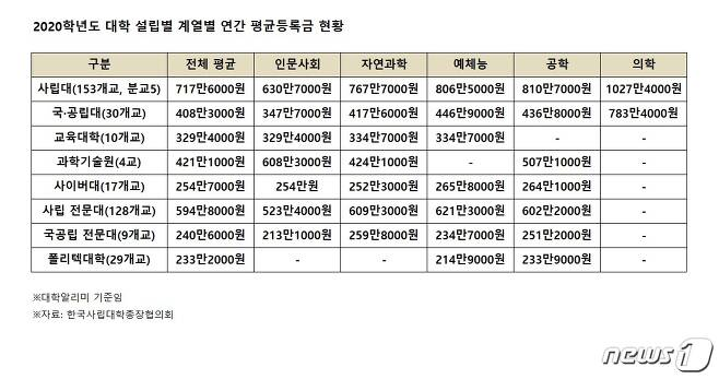 根據韓國喺2020年嘅一項調查,私立大學平均一年嘅學費係717萬韓元(大約4萬8千港幣),同香港其實差唔多,不過私立大學嘅醫科一年平均學費可以去到1027萬韓元(大約7萬港幣)。韓國SKY三大名校入面,延世同高麗大學都係出名學費貴嘅私立大學。