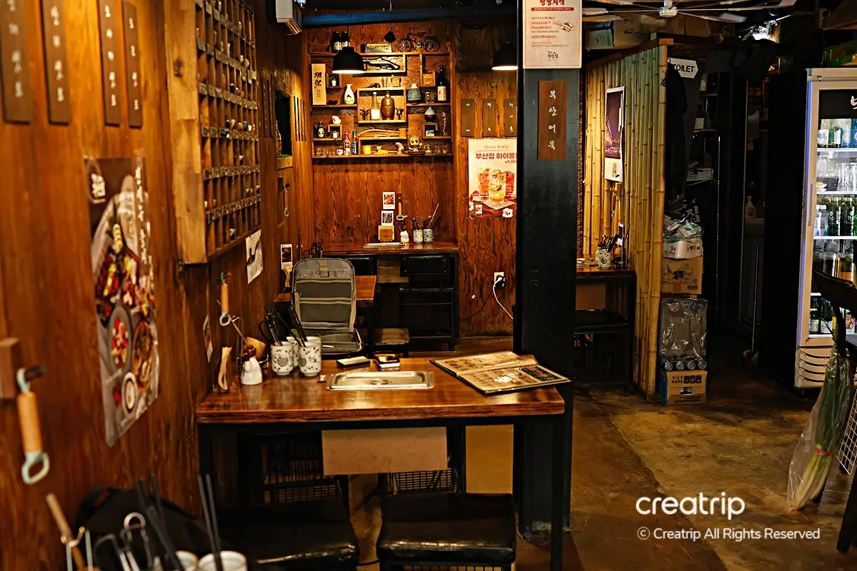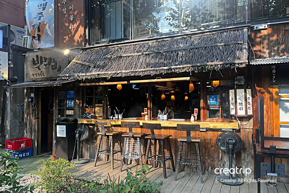 通常居酒屋都係得室內位,但係「鐵路釜山家」京義線林道店就有埋戶外位,天氣好嘅時候坐呢度食應該會好正!而餐廳內部裝修以日本居酒屋為主題,夠曬復古又特別。而且牆上仲有好多酒同酒杯,老闆話呢啲酒杯全部都係熟客們嘅私家杯,每次嚟都有得用返自己個杯,呢個system真係第一次見!