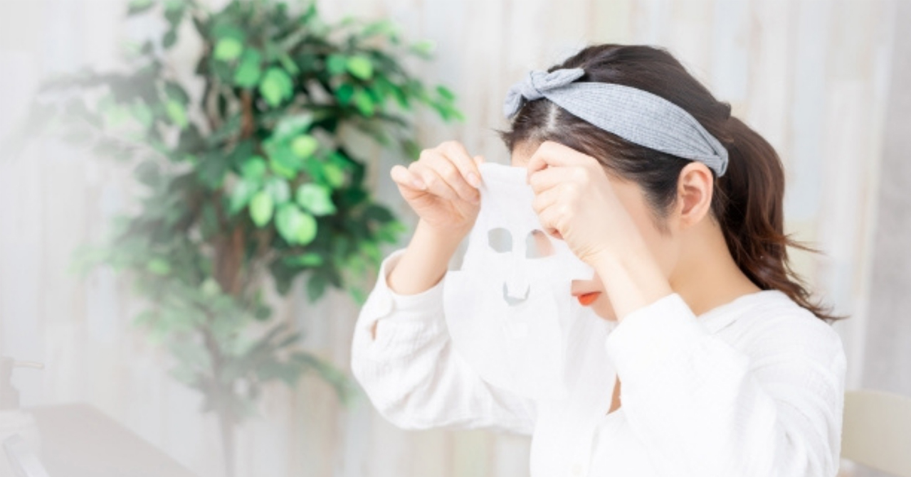 一位小型女性正在使用面膜進行護膚,氛圍自然舒適。