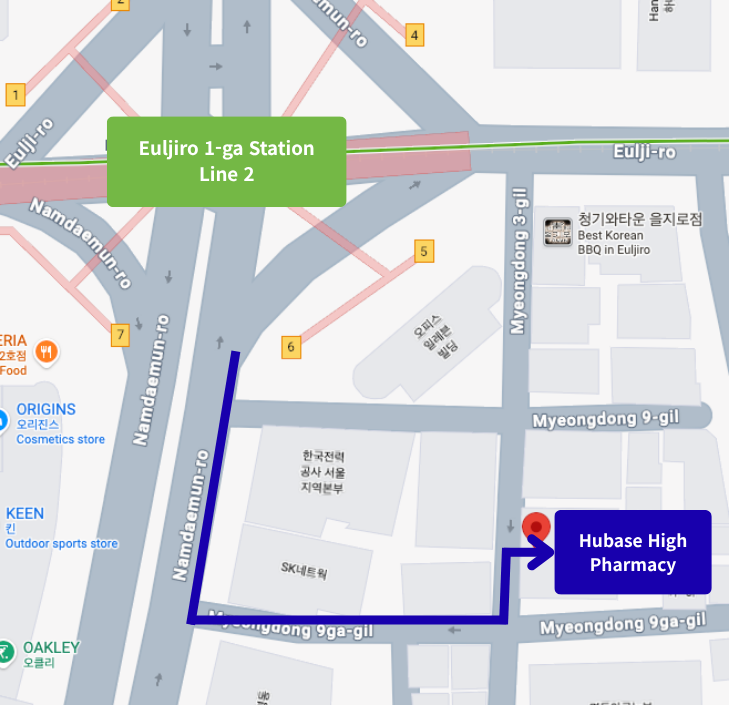 - 地址 : 서울 중구 명동9가길14 메트로호텔1층 휴베이스하이약국