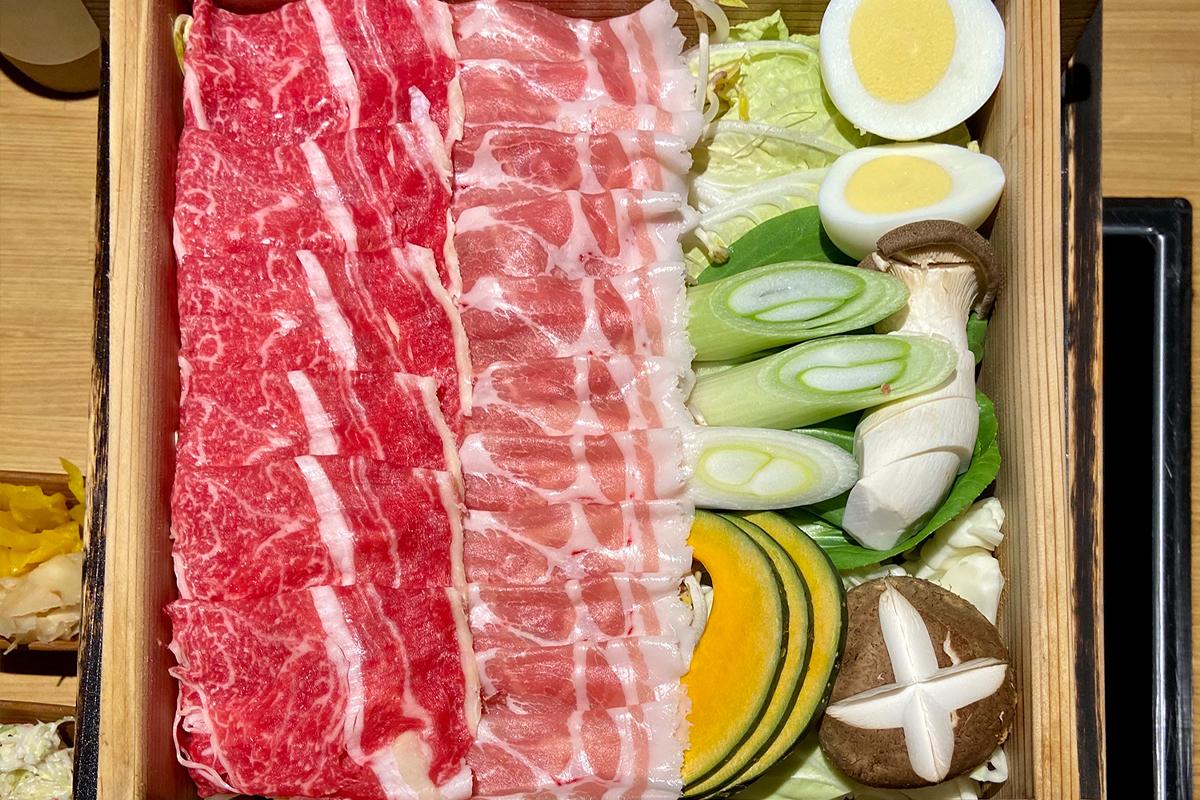 主打餐點是「Seiromushi」,也就是日式蒸鍋料理,以兩人套餐為基準,裡面有梅花豬、韓牛、南瓜、香菇、杏鮑菇、雞蛋、蔬菜、蔥類等等,是一道非常健康的料理。