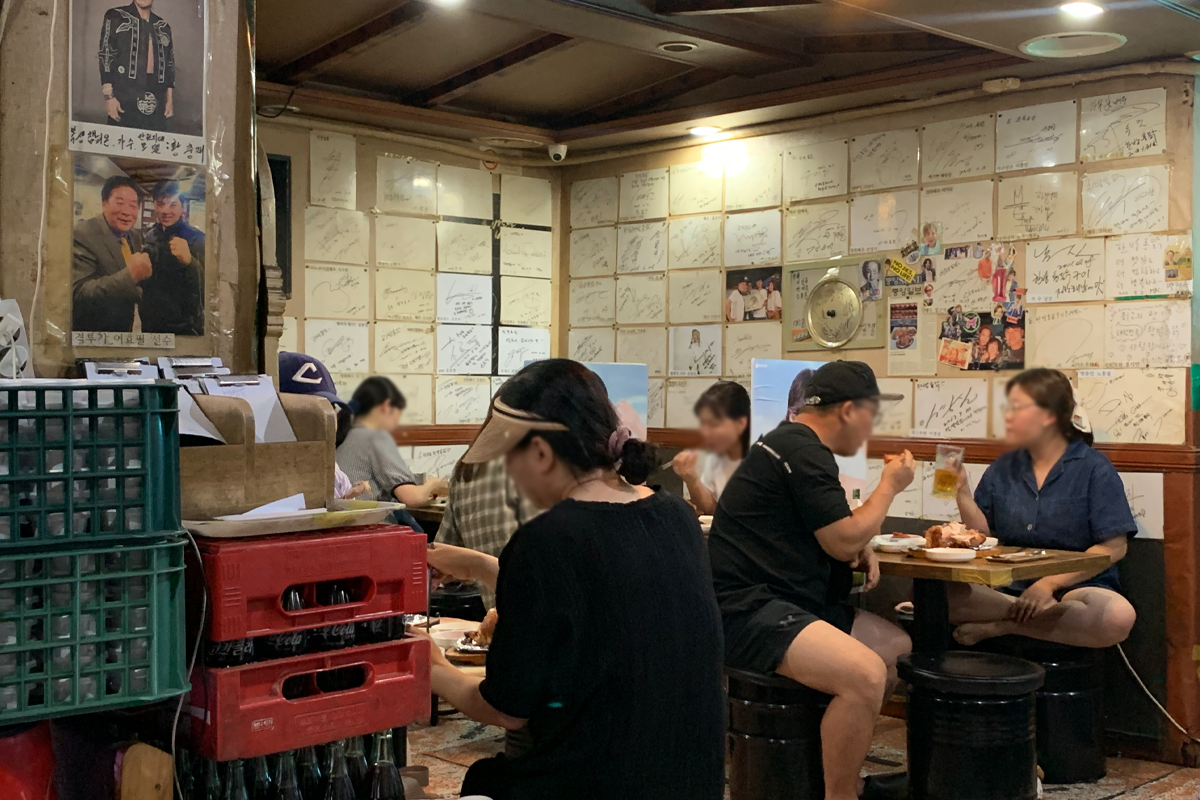 合井站附近的「合井烤肉店」也是韓星經常訪問的餐廳,店裡牆上有滿滿的藝人簽名,像是Running man成員全昭旻、李光洙、樂童音樂家等明星都來過。