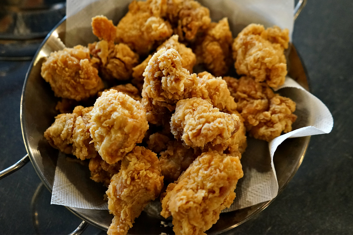 這類帶有紅色光澤的炸雞,也是與原味炸雞並列兩大山脈的「洋釀炸雞」,以辣醬裹粉去炸,吃起來味道更加豐富,讓人停不下來;不過要注意因為每間店的洋釀口味辣度略有不同,點餐時再和店員確認一下吧。