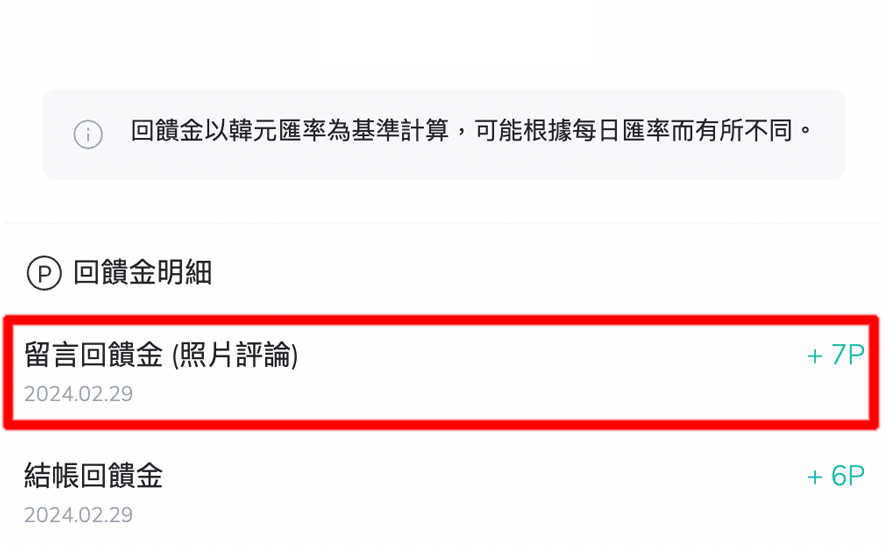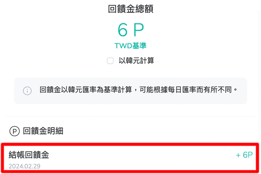 答:以繁體中文登入時,獲得的回饋金為韓元自動轉換為台幣(1P等於新台幣1元);亦可根據個人使用習慣,變更語言,回饋金將會自動換算成該語系之幣值。