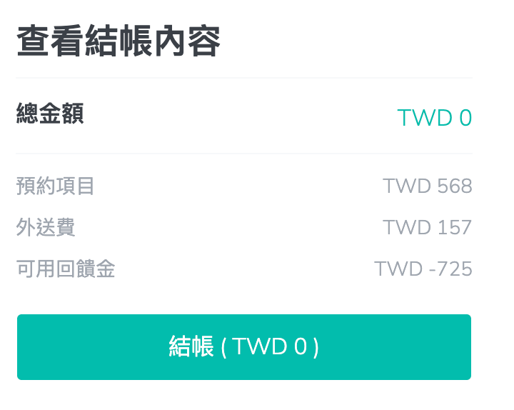 5. 扣除定額回饋金,可以0元結帳,完成預訂