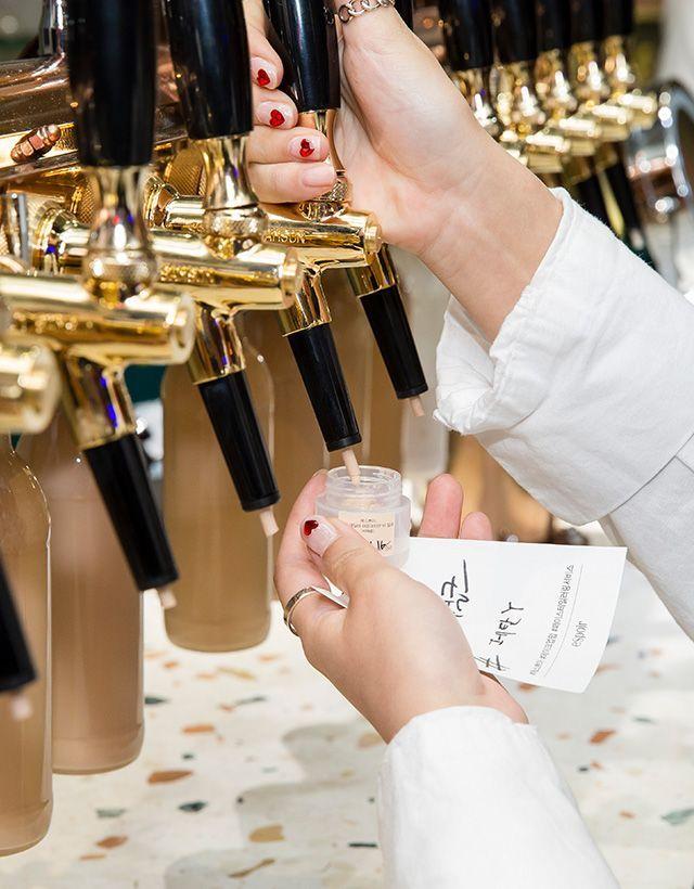 這可不是啤酒機,而是裝著粉底液的機器,是不是跟弘大espoir make up pub的風格很搭呢?
