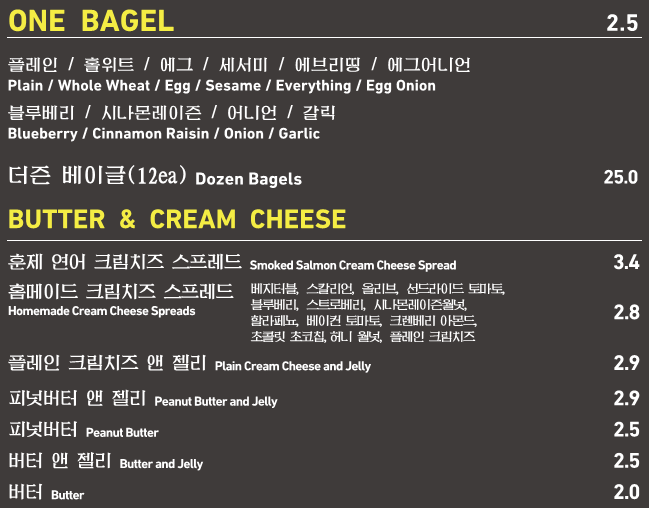 | 手工奶油起司 홈메이드 크림치즈 스프레드 | ₩2,800 |