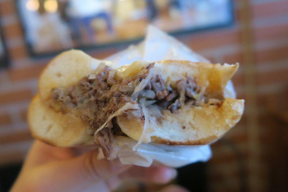 小編點了費城起司牛肉貝果三明治,裡面的肉非常多,只吃一個就飽了,除了肉之外,裡面還有烤洋蔥跟牽絲的起司,也非常好吃。