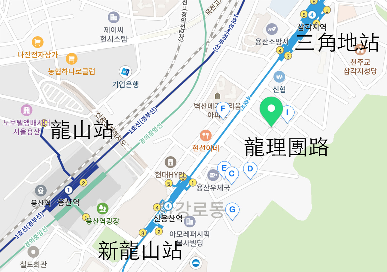 • 位置:首爾地鐵1、4號線龍山站(용산역)、4號線新龍山站(신용산역)