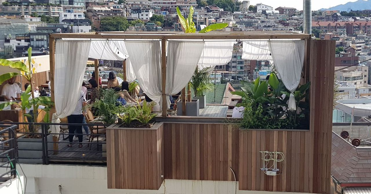 首爾經理團路Graddhyllan咖啡廳的屋頂空間,提供遊客享受開放景色與天氣的場所,中午時段最適合拜訪。