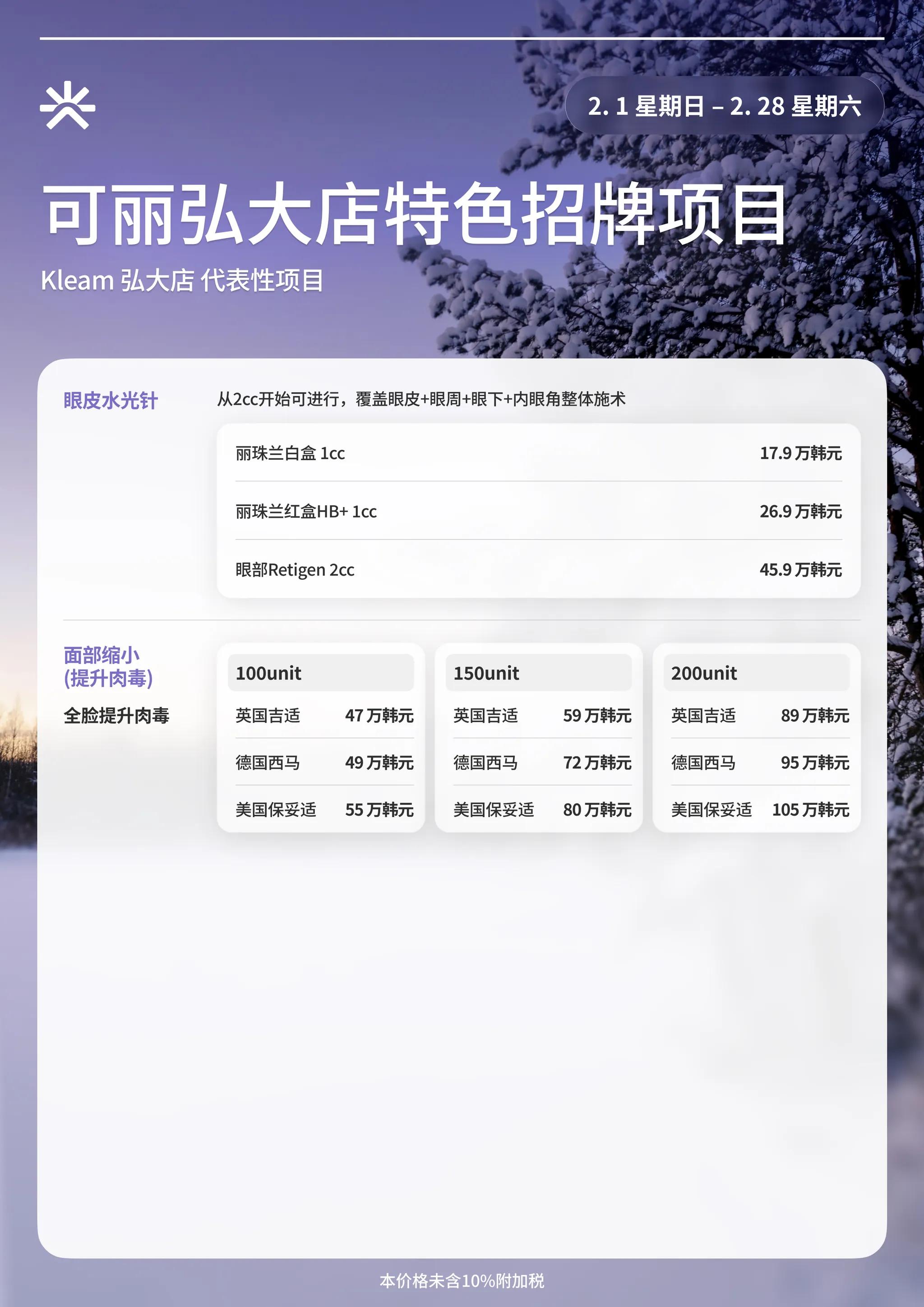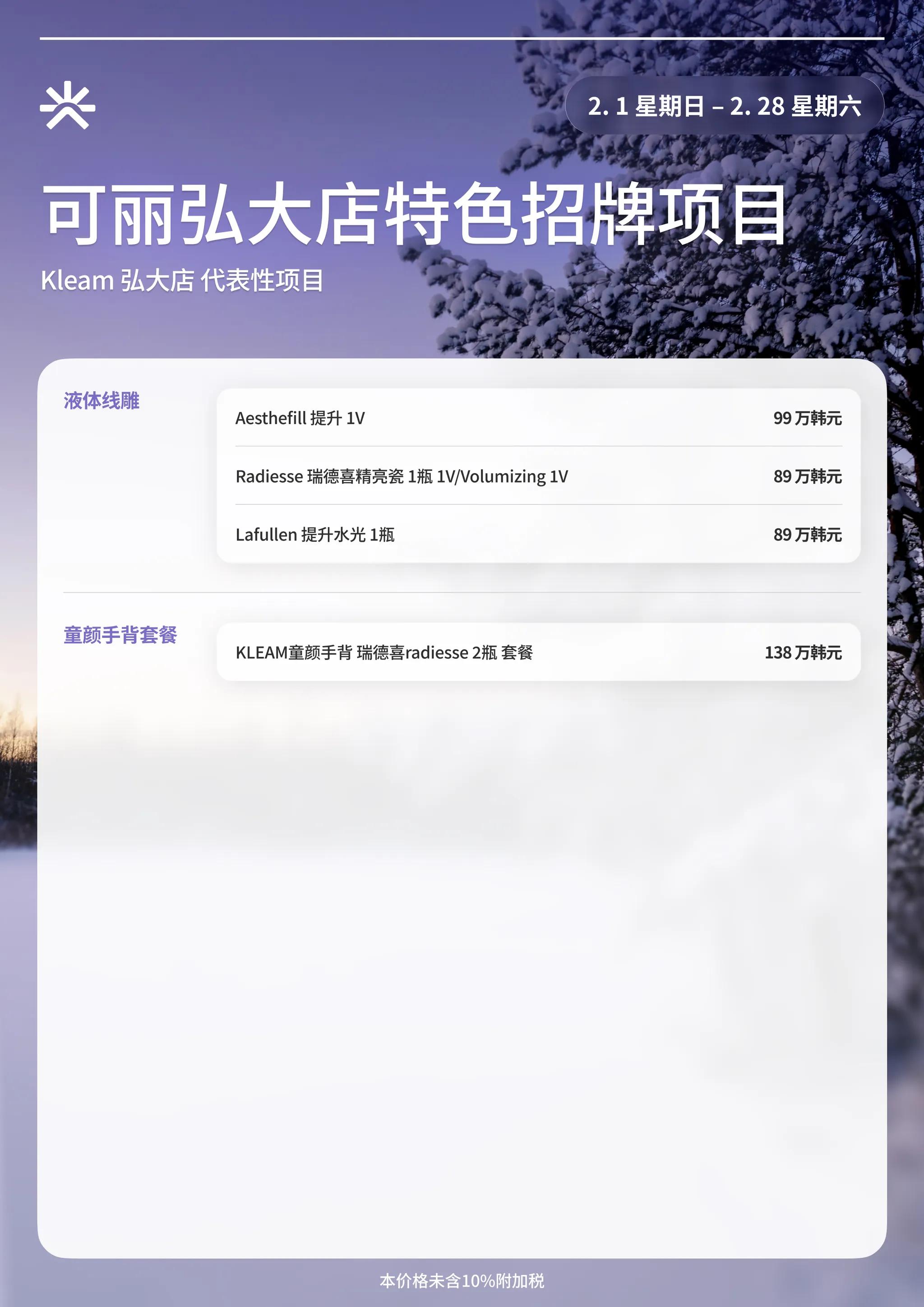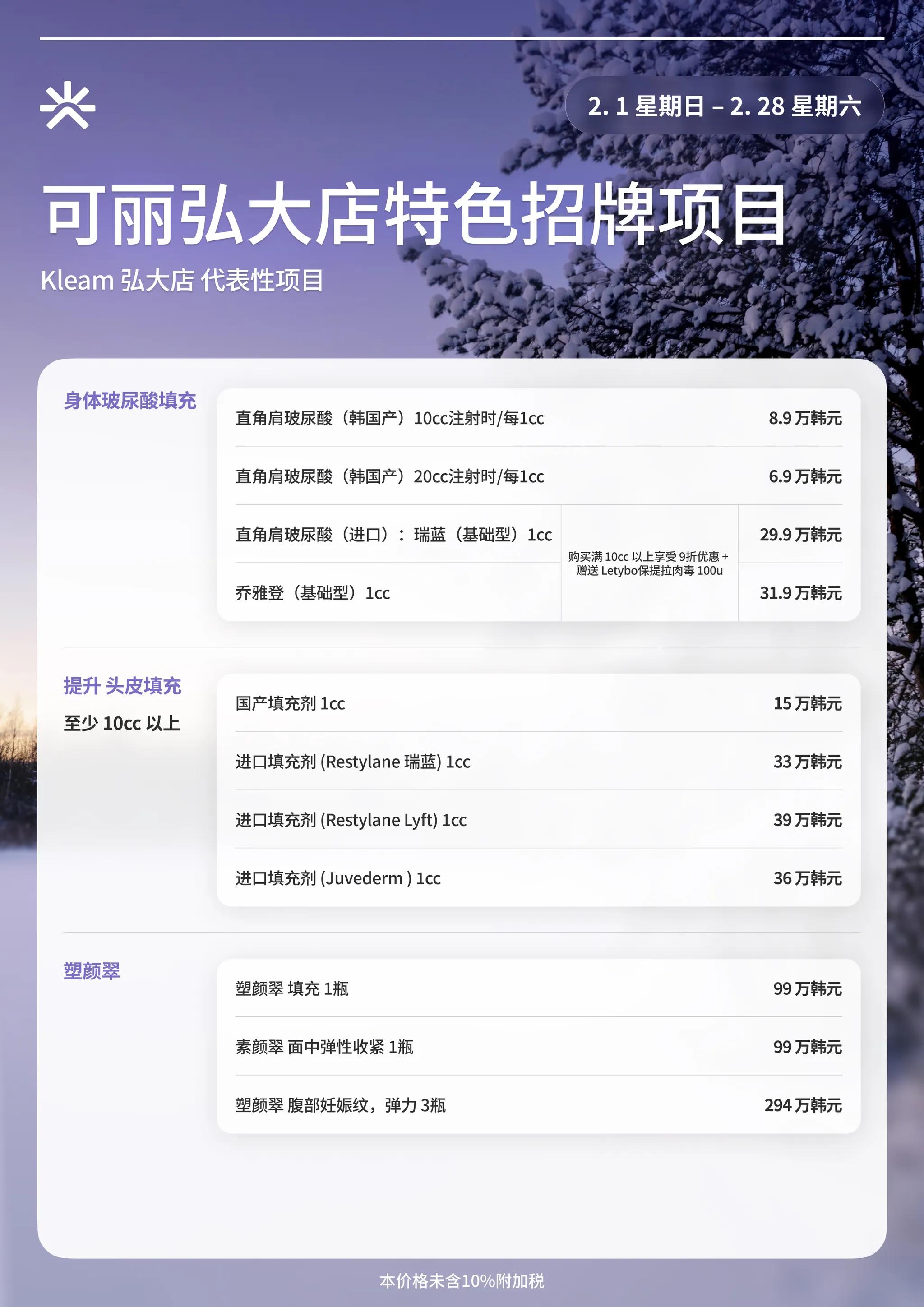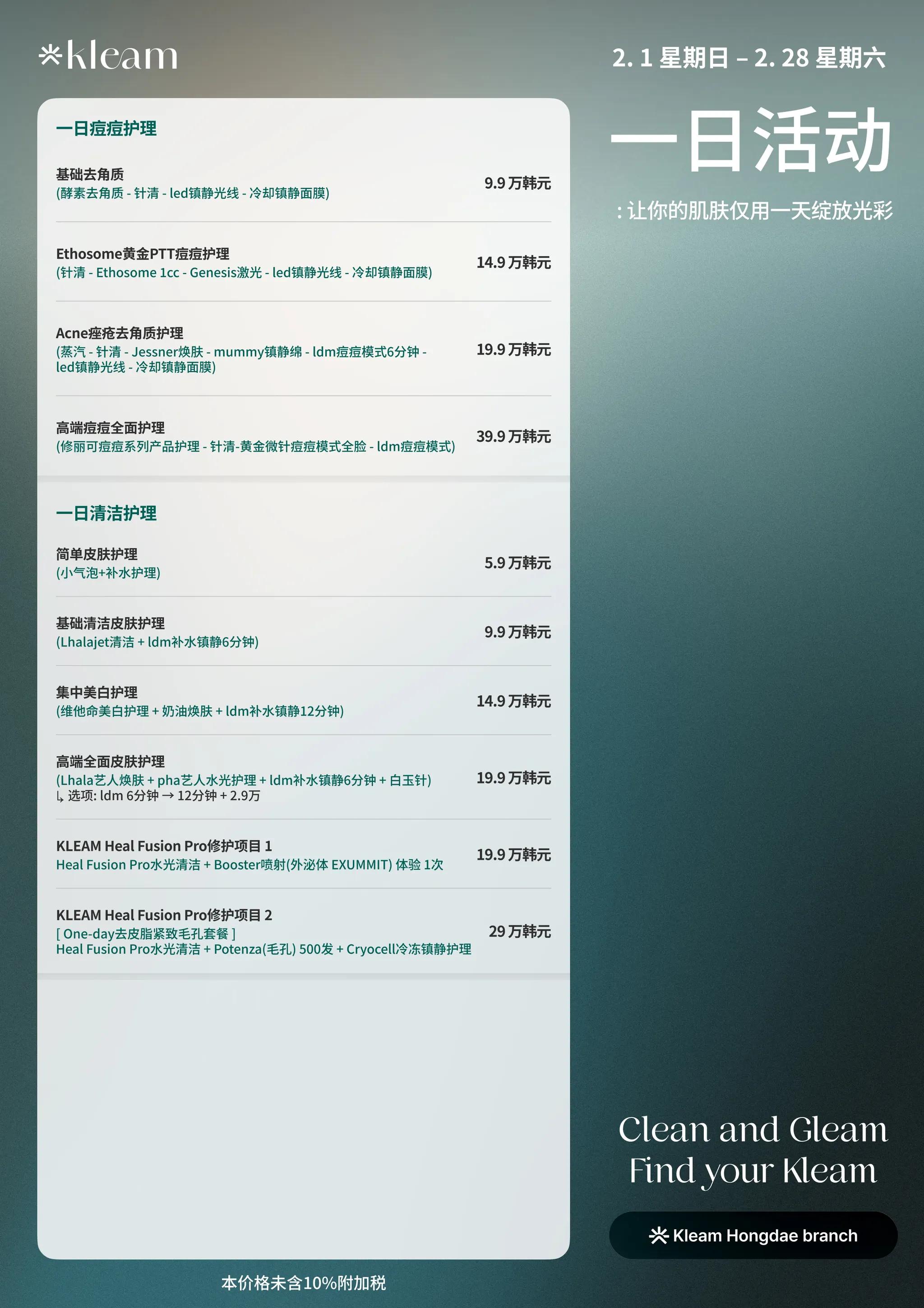 活躍的活動與長期經歷和專業性的醫療人員所組成,可以信賴並使用。擁有10年以上經驗的代表院長「金賢玉」親自施術,確保高滿意度的服務品質,體驗經濟實惠且高品質的皮膚施術。不想要走流水線的醫美?從護膚、肉毒、拉提全都能滿足,各種商談滿足你對美的追求,Kleam迅速讓你找回美的自信心。不需要提前決定要做哪些療程,免費預約的諮詢可以輕鬆安排訪問日程喔。弘大Kleam優惠活動中文(簡體)