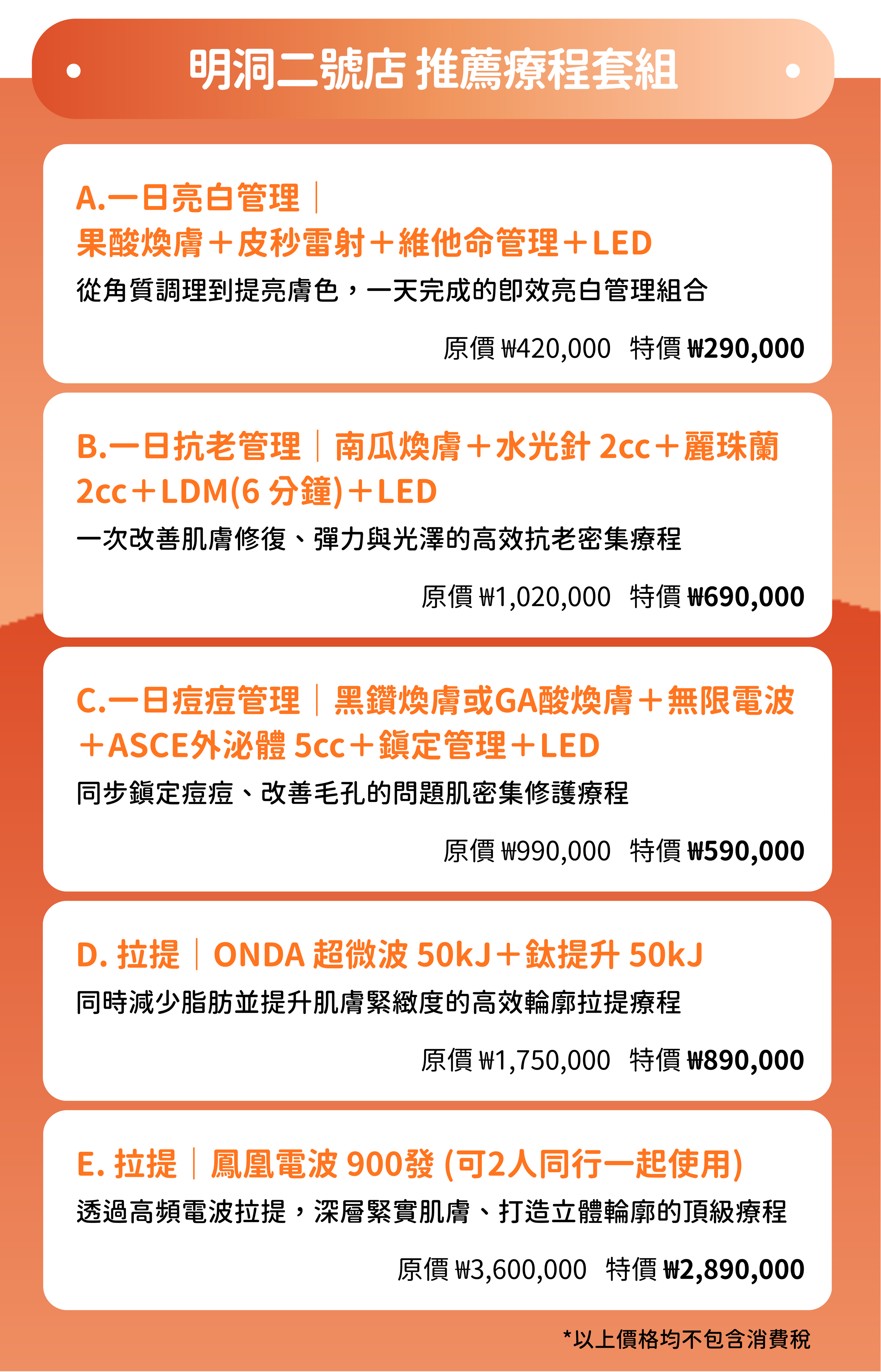 明洞2號店是一站式療程中心,配備了最新的全球頂級設備,