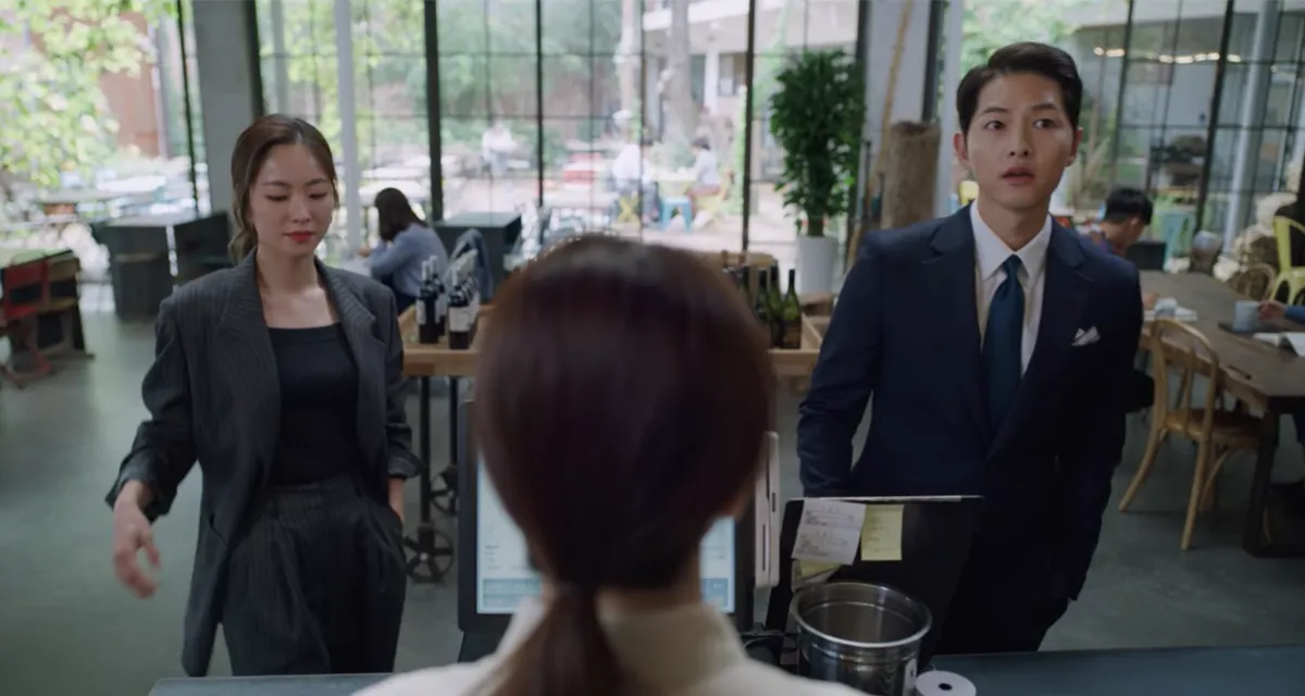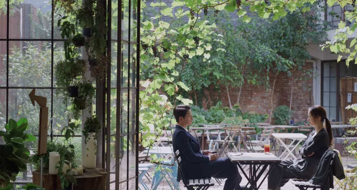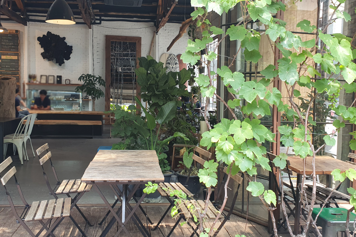 柜台的对面是扇通向庭院的玻璃窗,像今天这样放晴的日子里,店家会打开窗户,让室内外空间相连,这个位置也是《黑道律师文森佐》中,宋仲基与全汝彬坐著的位置呢。