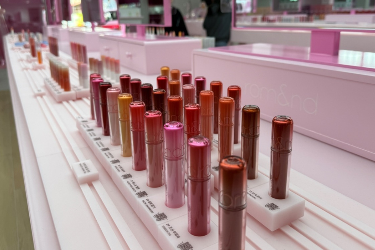 dasique店內的愛心形狀化妝產品陳列,只在這裡能找到所有的豐富色彩。