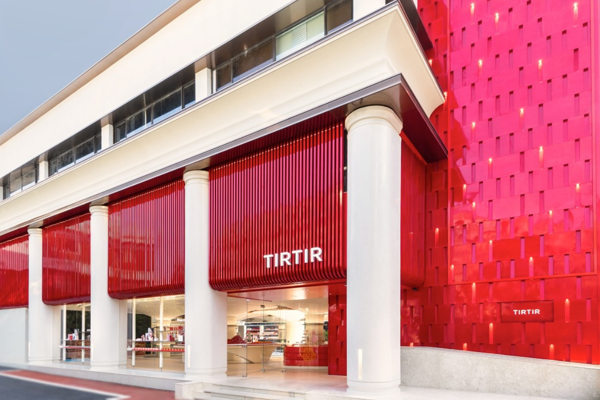 hince聖水店的外觀,展示著其獨特的設計和紅色的品牌元素。