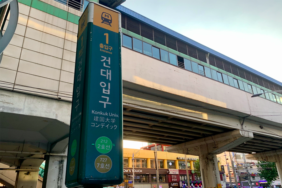 建大商圈所在的建大入口站(건대입구역)共有两条路线,分别是首尔地铁2号线(上行)、地铁7号线。而建大商圈所在位置为1、2号出口。