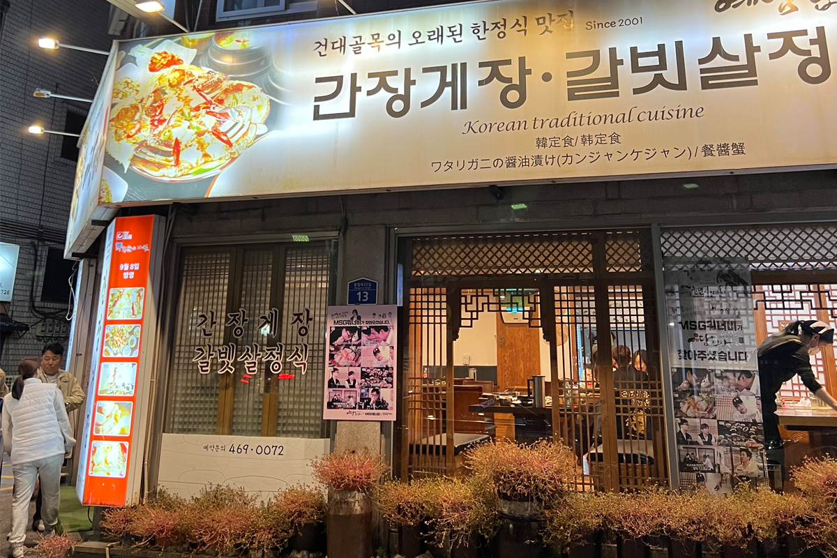 在临近圣水洞的建大商圈这里,也有间酱蟹名店「艺谈饭桌」,这间酱蟹店可是大有来头,许多韩国综艺节目都来采访过,近期的就是《玩什么好呢?》,其他一般采访也不少,是相当道地的酱蟹店。