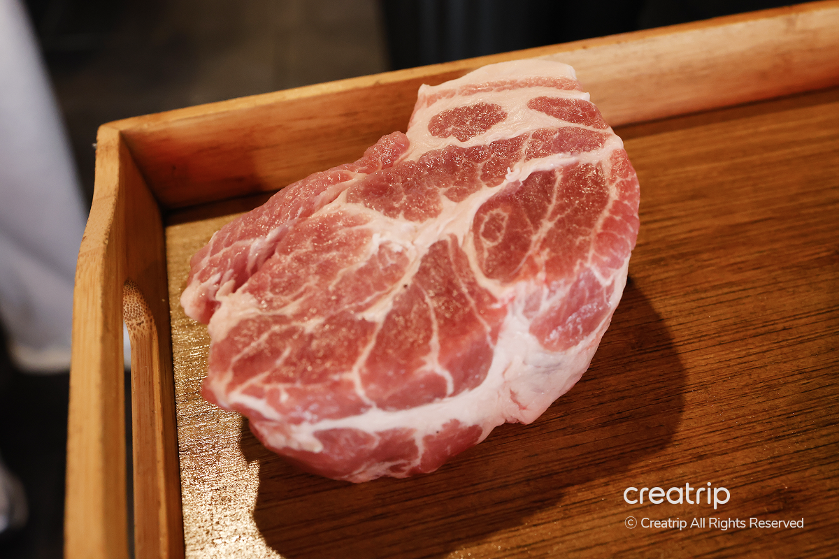 猪颈肉吃起来不会干涩,口感很嫩,而且油脂也比较少,有些人比较爱这一款;但小编个人还是偏爱给豚的男人的三层肉。