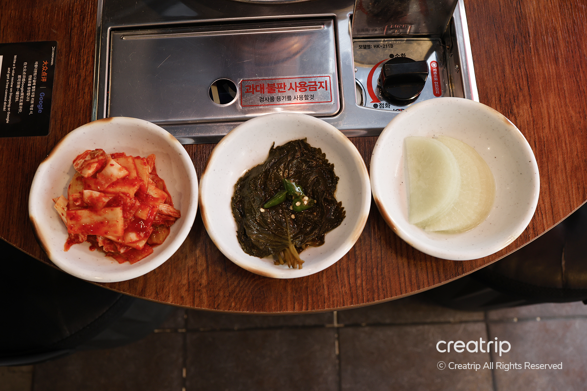 再来是猪肉泡菜汤与大酱汤,作为加点配菜,用料可说是很实在,也可以加点白饭配著汤头一起下肚,浓郁的滋味,让人一口接一口,真的很上瘾。