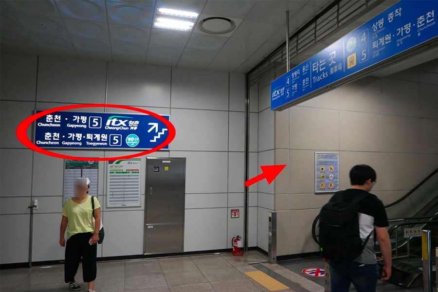 搭乘手扶梯抵达上凤站的火车区域,这时就要注意,京春线与京义中央线的方向开始不同,而要在上凤站搭乘ITX的朋友,也跟著京春线的方向走即可,路上也会有指标,表示前往「加平/春川」方向。