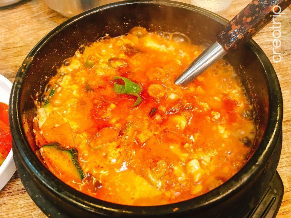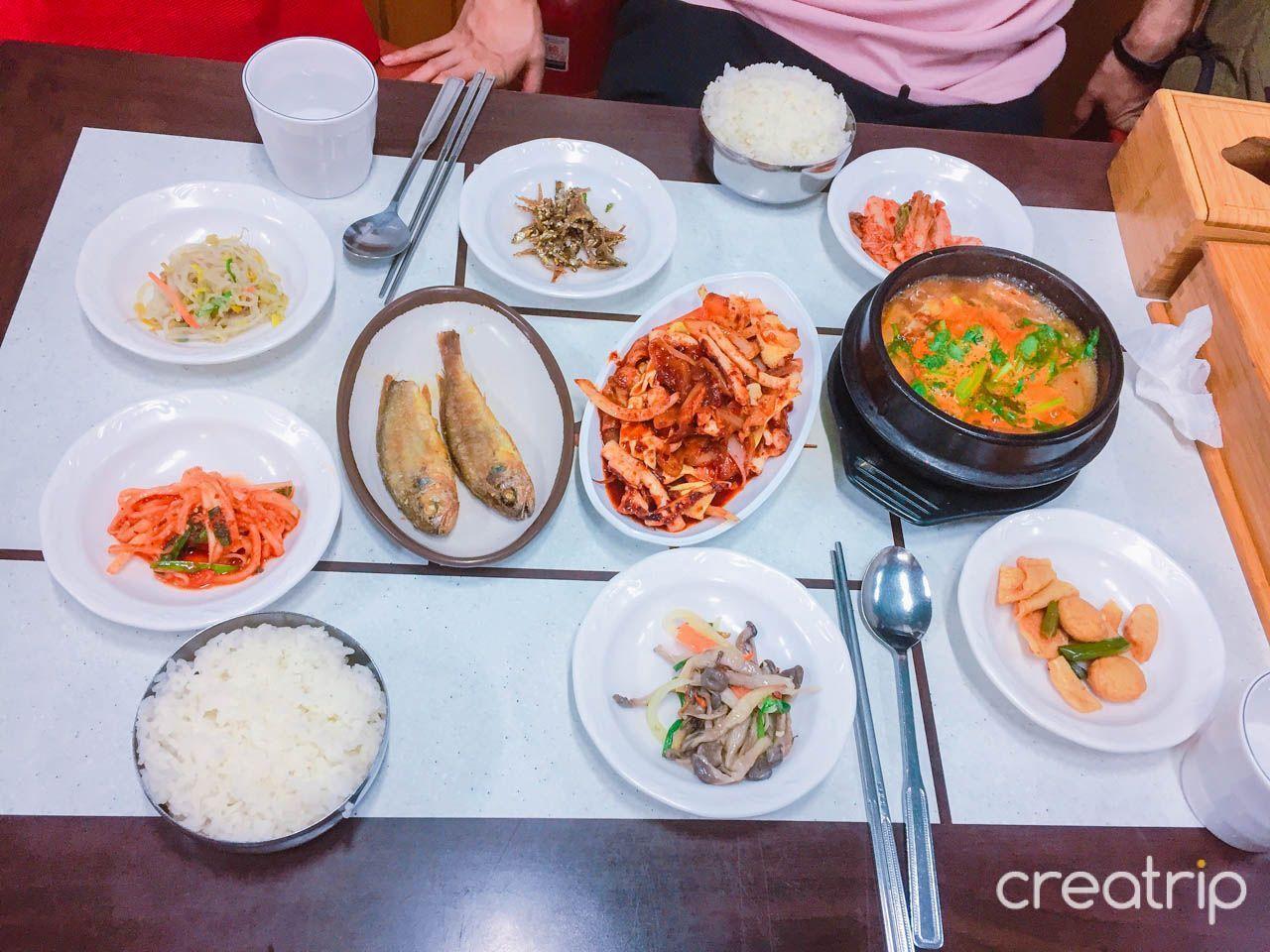 '小菜无限提供的韩国料理店,最推荐明太鱼汤!'