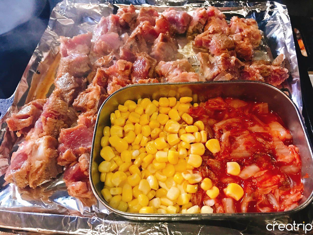 ↑ 点肉之后,会送上玉米粒和泡菜,让客人可以一起烤来吃