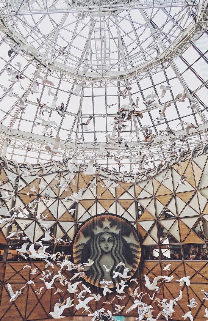 巨大的圆形玻璃屋顶和如在天空飞翔一样的感觉就是这家店铺的设计概念~