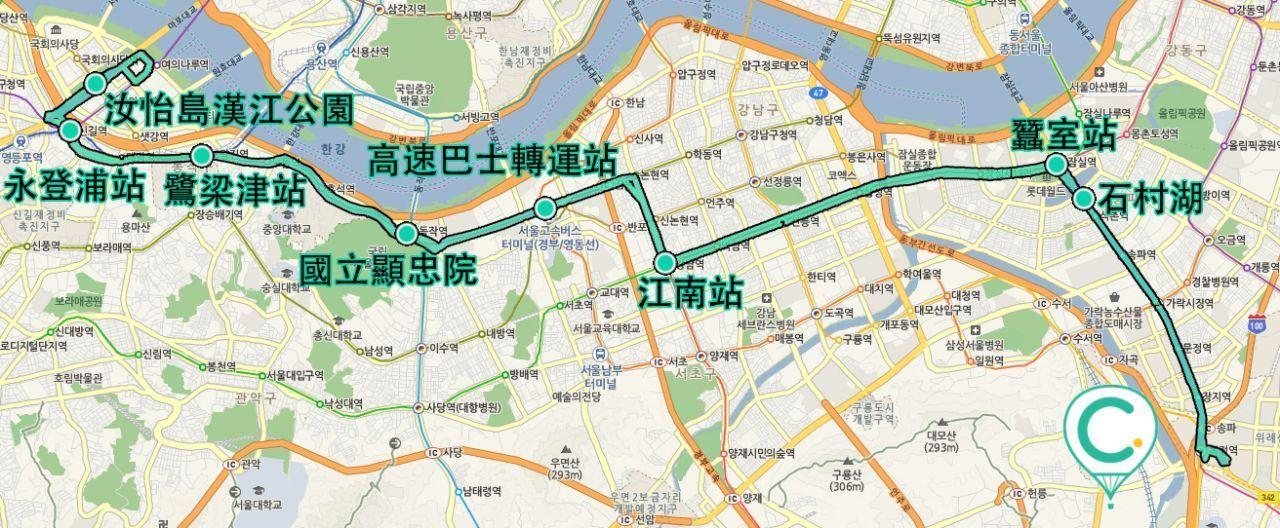 高速巴士站、江南站、蚕室站、石村湖水..等韩国有名的观光景点喔!