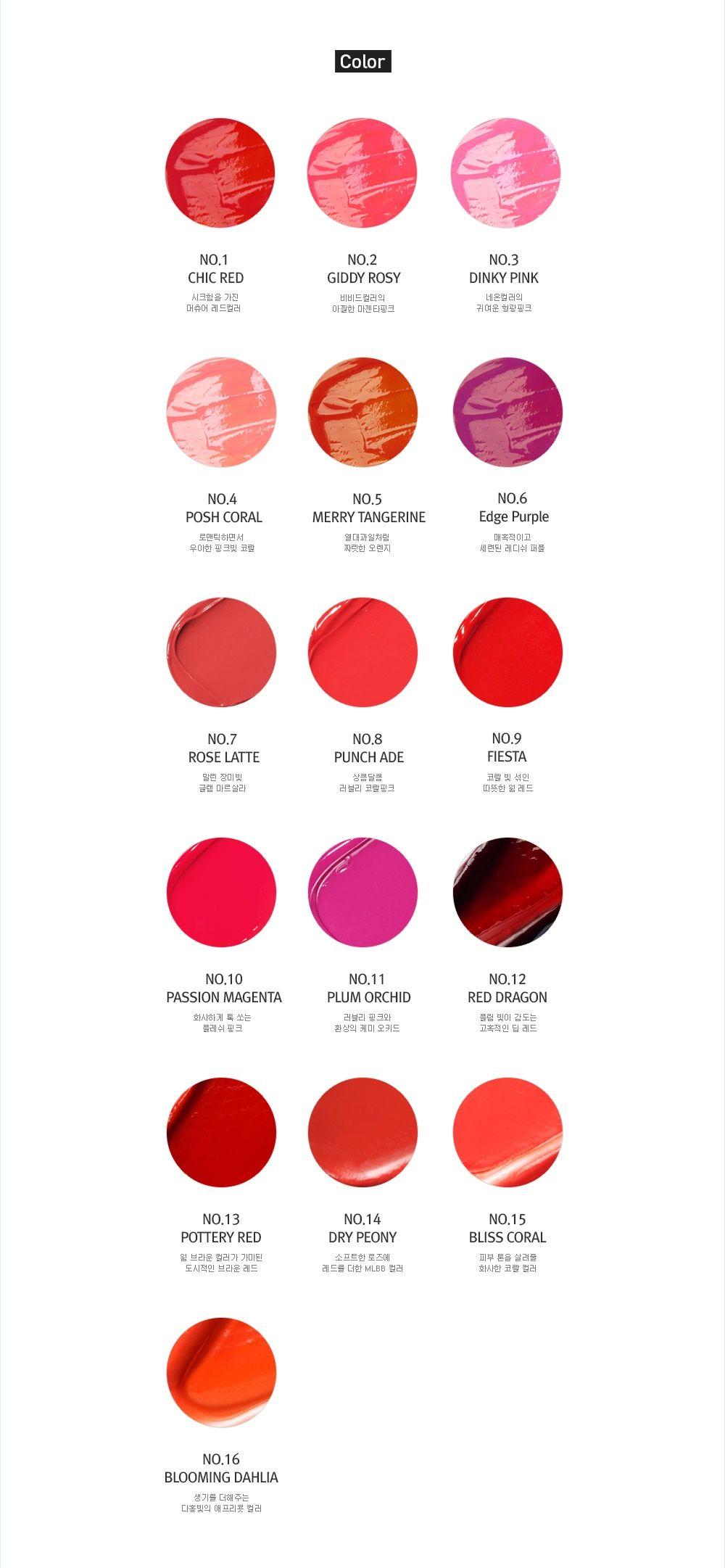| 1号 Scandal Red | 2号 Cherry Crush | 3号 Carrot Orange | 4号 Sheer Rose |