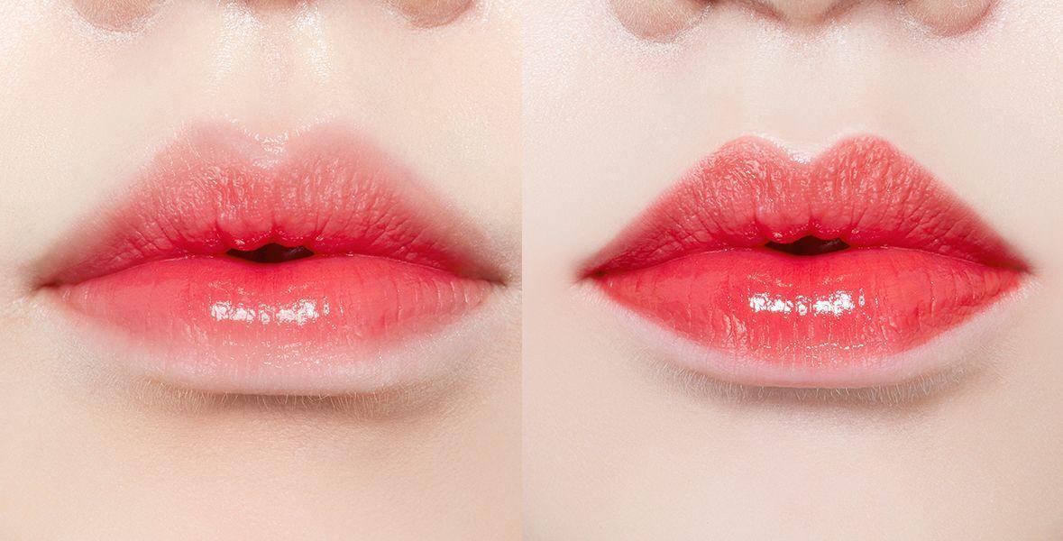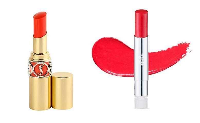 YSL的情挑诱光水唇膏12号跟ETUDE HOUSE的时尚造型唇属巧盒RD301号-机场时尚红