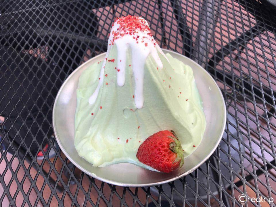 里面是包含着满满的草莓酱,并以日本的火山作为造型制作出来的蛋糕
