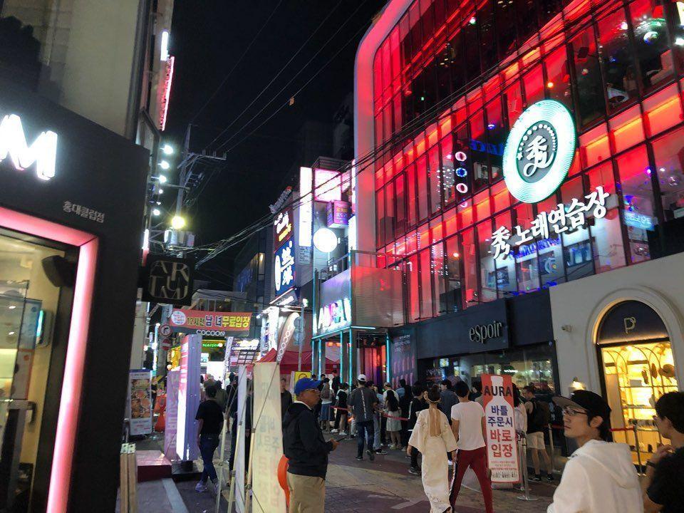 而且弘大商圈丰富的点,就是除了购物之外,也能满足一切的娱乐需求;酒吧、夜店、唱歌房都有,到周末假日的半夜,弘大也都还是人潮满满,可说是不夜城。