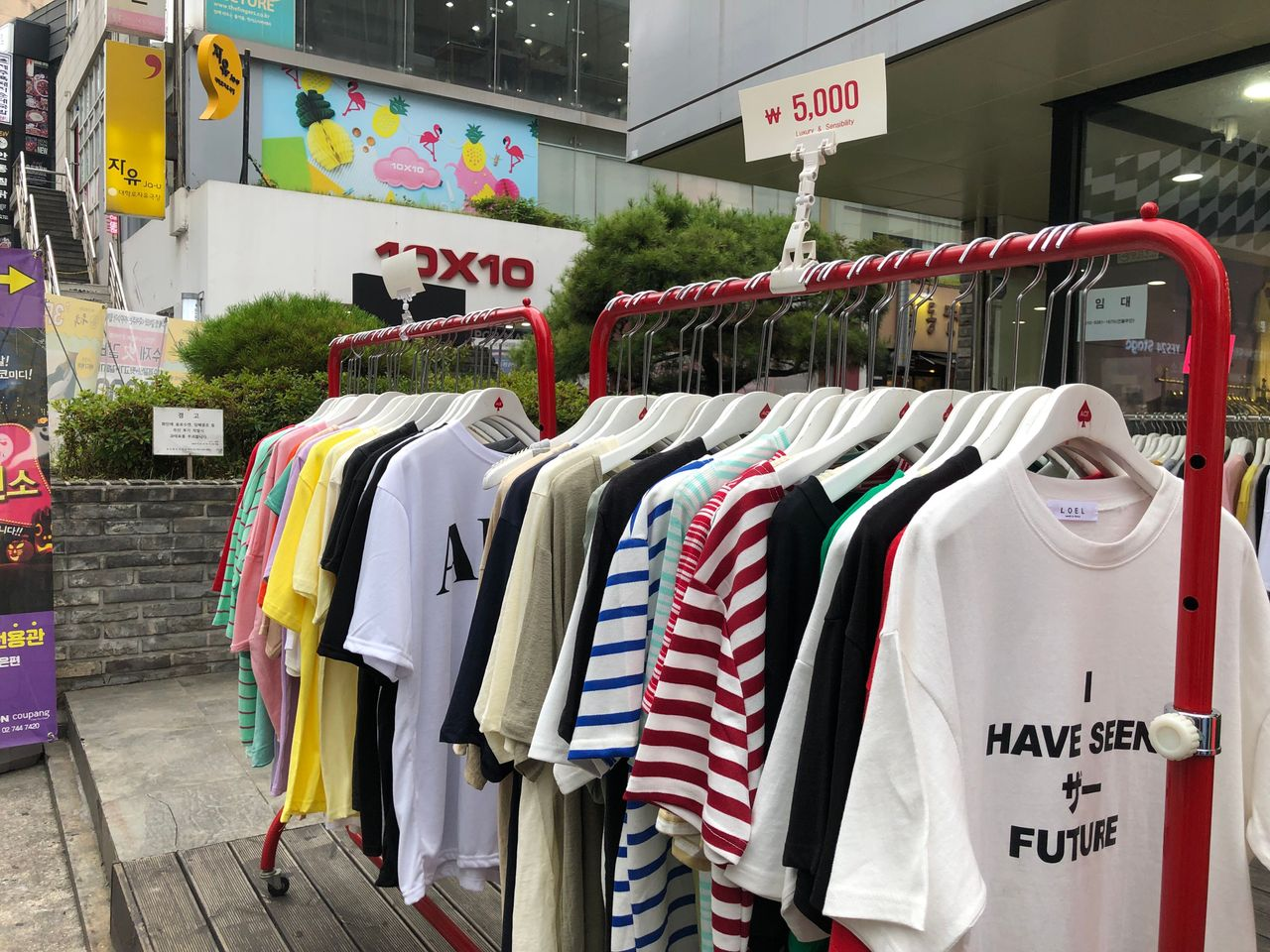 总是跟著季节走、跟著最新潮流在变化与特价的梨大女人街,看了这些衣服还不心动吗?一件只要₩5,000或₩10,000的便宜价格,买多了也不心疼,是不是一定要来走走呢?