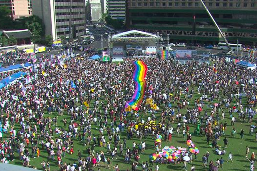 那韩国呢?第一届于首尔举办的同志游行(2000年)仅有500多人参与。而在2014年前,游行一直只能在局部区域举办,如梨泰院、惠化、新村等等。是后来在前任市长朴元淳支持下,才于首尔市厅广场举办,参加人数也才抵达梦幻般的五万人。